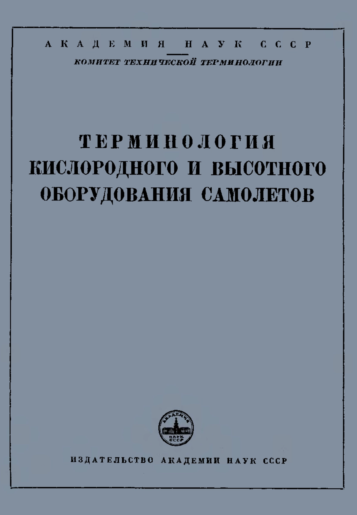 Издаваемый Сборник содержит термины по кислородному и высотному оборудованию самолетов, рекомендуемые для применения в научной, учебной и производственной литературе. В Сборник включены лишь основные, наиболее часто встречающиеся термины. При этом следует иметь в виду, что в работе не ставилась цель дать наименования существующих моделей кислородных приборов, а приведены термины их основных видов. В Сборник включены термины, принадлежащие непосредственно к кислородному и высотному оборудованию, а также некоторые термины, относящиеся к физиологии дыхания на высотах, необходимые для изложения основ кислородного и высотного оборудования. Хотя для характеристики и описания кислородного и высотного оборудования приходится использовать также термины общетехнических дисциплин и смежных разделов авиационной техники, такие термины в Сборник не включены. Наиболее точно эти термины могут быть определены лишь при рассмотрении дисциплин, к которым они принадлежат.