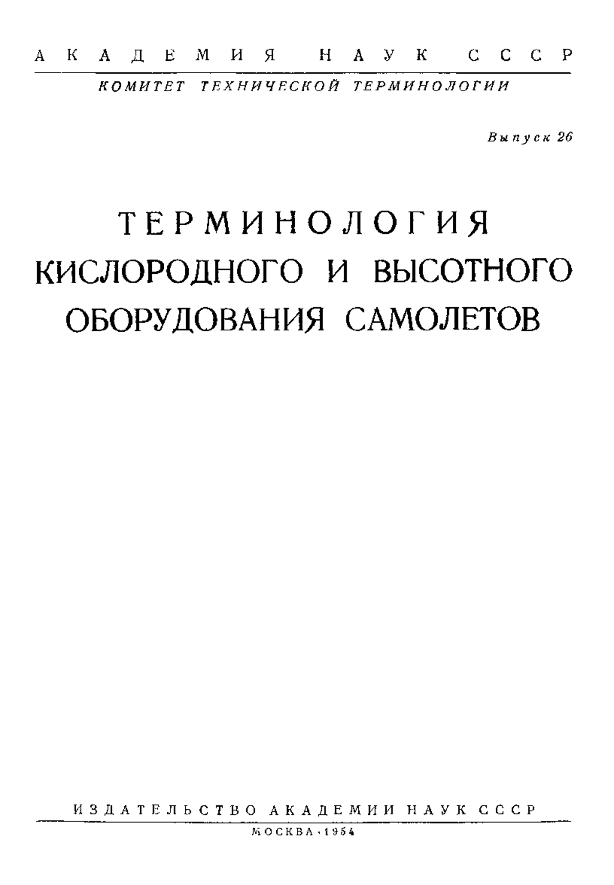 Книга: Сборники рекомендуемых терминов. Выпуск 26. Терминология кислородного и высотного оборудования самолетов