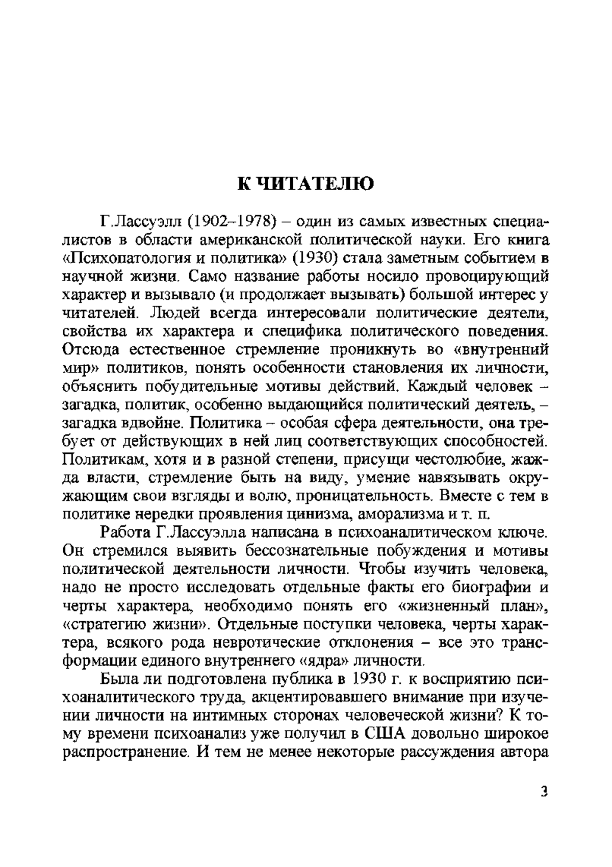 Гарольд Д. Лассуэлл (1902–1978) – один из наиболее известных специалистов в американской и мировой политической науке. Он является создателем нового направления в исследовании политических феноменов – политического психоанализа. В книге «Психопатология и политика» четко сформулированы основные принципы психоанализа и раскрыты широкие возможности его применения в политической сфере.