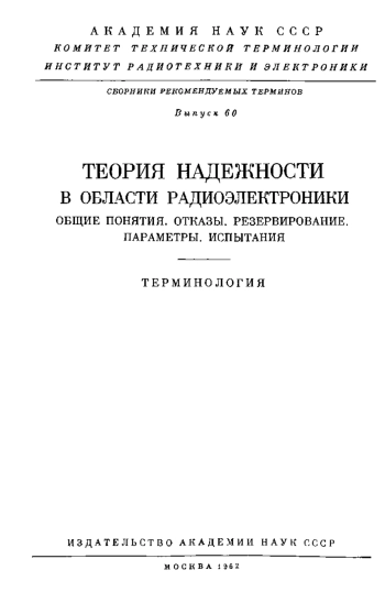 Книга: Сборники рекомендуемых терминов. Выпуск 60. Теория надежности в области радиоэлектроники. Терминология