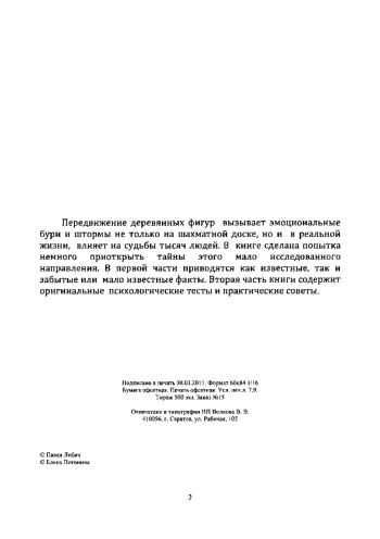 Передвижение деревянных фигур вызывает эмоциональные бури и штормы не только на шахматной доске, но и в реальной жизни, влияет на судьбы тысяч людей. В книге сделана попытка немного приоткрыть тайны этого мало исследованного направления.