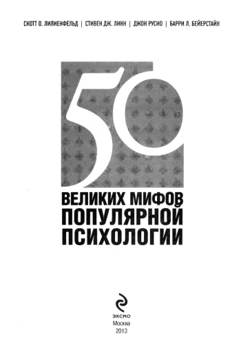 Лидиенфельд С. О. 50 великих мифов популярной психологии / Скотт О. Лидиенфельд, Стивен Дж. Линн, Джон Русио, Барри Л. Бейерстайн. — М. : Эксмо, 2013. — 512 с. — (Психология. Антология мысли).