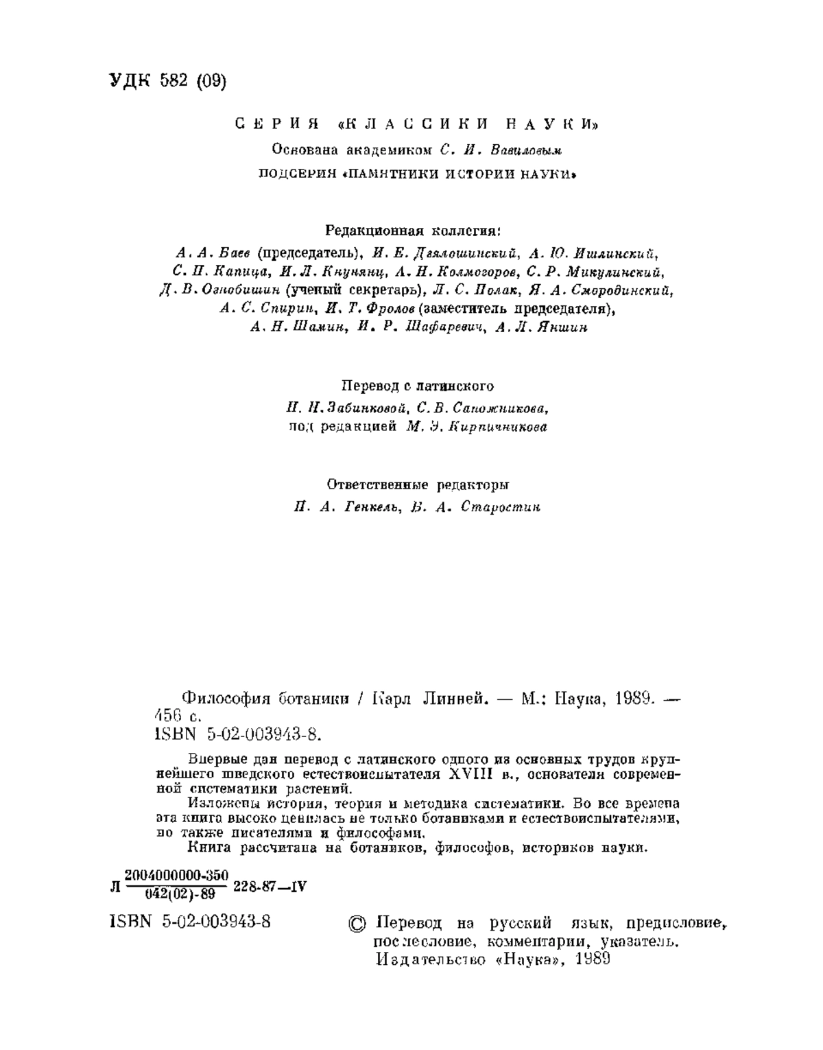 Философия ботаники / Карл Линней. — М.: Наука, 1989. —