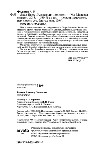 Ф 53 Яков Брюс /Александр Филимон. — М.: Молодая