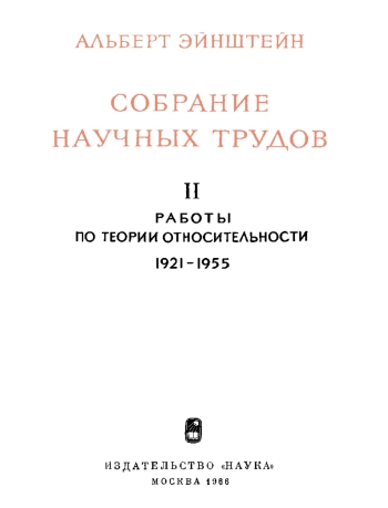 Книга: Альберт Эйнштейн. Собрание научных трудов. Том 2. Работы по теории относительности 1922-1955