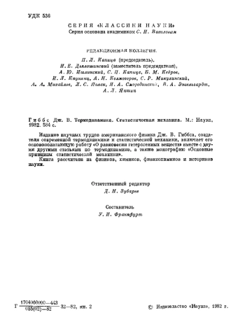 Гиббс Дж. В. Термодинамика. Статистическая механика. М.: Наука,