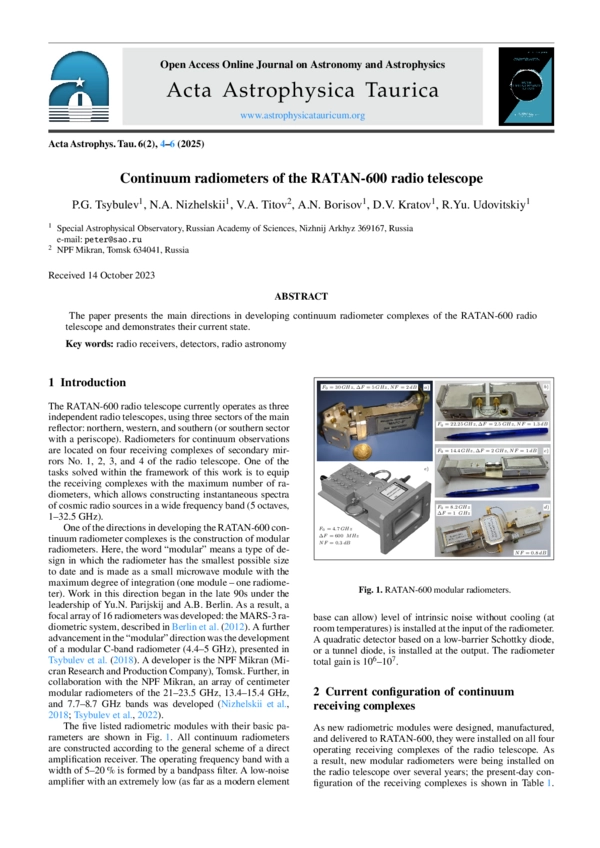 Tsybulev P.G., Nizhelskii N.A., Titov V.A., Borisov A.N., Kratov D.V., Udovitskiy R.Yu.