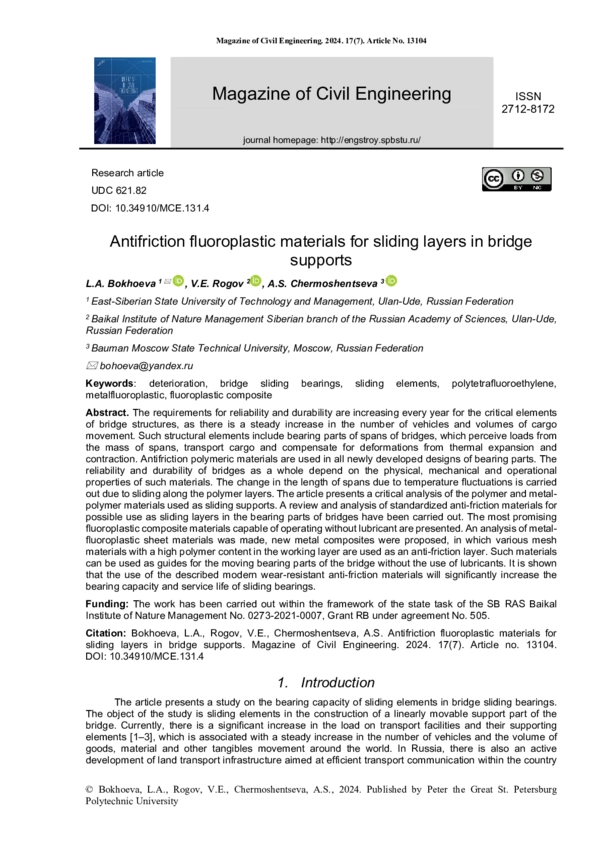 Статья: Antifriction fluoroplastic materials for sliding layers in bridge supports