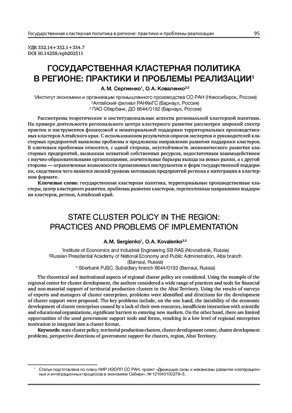 Статья: ГОСУДАРСТВЕННАЯ КЛАСТЕРНАЯ ПОЛИТИКА В РЕГИОНЕ: ПРАКТИКИ И ПРОБЛЕМЫ РЕАЛИЗАЦИИ