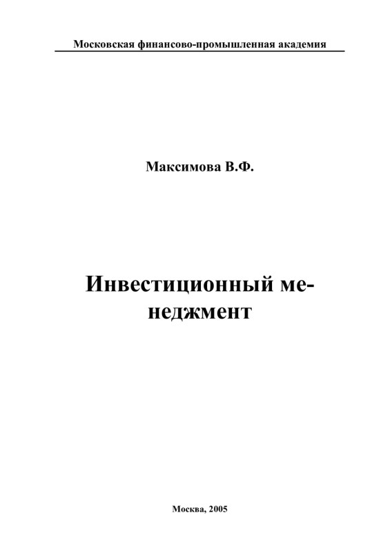 Максимова В. Ф. Инвестиционный менеджмент / Московская финансово-промышленная академия. – М., 2005. – 158 с.
