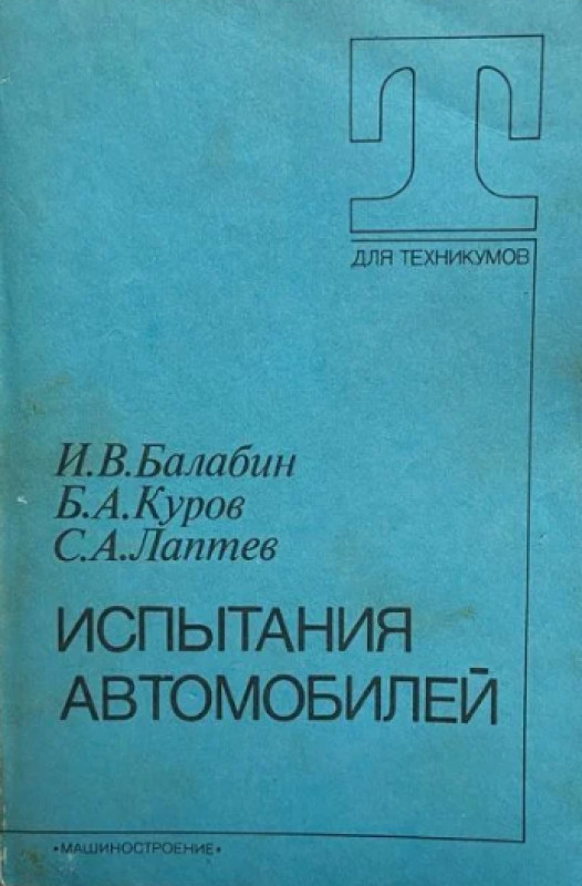 автомобилей: Учебник для машиностроительных техникумов по специальности «Автомобилестроение»/ И. В. Балабин, Б. А. Куров, С. А. Лаптев. - 2-е изд., перераб. и доп. - М.: Машиностроение, 1988. — 192 с.: ил.