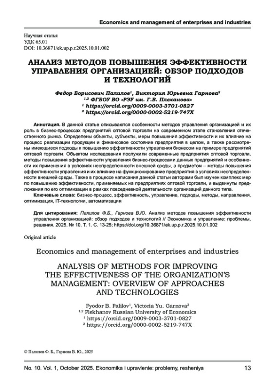 Статья: АНАЛИЗ МЕТОДОВ ПОВЫШЕНИЯ ЭФФЕКТИВНОСТИ УПРАВЛЕНИЯ ОРГАНИЗАЦИЕЙ: ОБЗОР ПОДХОДОВ И ТЕХНОЛОГИЙ