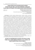 Статья: ЛЕКСИЧЕСКАЯ РЕПРЕЗЕНТАЦИЯ ПРОСТРАНСТВА ДЛЯ НЕЗРЯЧИХ ЛЮДЕЙ КАК ИНСТРУМЕНТ РЕАЛИЗАЦИИ ИНКЛЮЗИИ