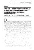 Статья: НАУЧНО-МЕТОДИЧЕСКИЙ СЕМИНАР «ЦЕРКОВНОСЛАВЯНСКИЙ ЯЗЫК И СОВРЕМЕННАЯ СИСТЕМА ОБРАЗОВАНИЯ» (СРЕТЕНСКАЯ ДУХОВНАЯ АКАДЕМИЯ)