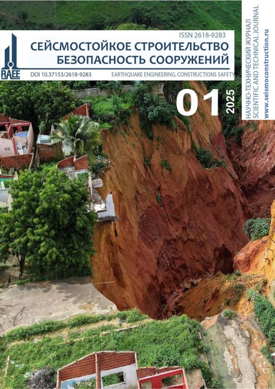 Результаты. В рамках настоящей работы проведены экспериментальные исследования сейсмостойкости каркасно-обшивных перегородок с каркасом из стальных холодногнутых оцинкованных профилей и панелями обшивок из листовых материалов на основе гипса. По результатам экспериментальных исследований определены разрушающие нагрузки, установлены схемы повреждения и разрушения образцов, определены предельные значения перекосов, а также установлен характер разрушения образцов при знакопеременных квазистатических нагрузках, моделирующих напряженно-деформированное состояние перегородки, возникающее при сейсмических воздействиях. Выводы. Результаты испытаний подтверждают сейсмостойкость испытанных конструкций каркасно-обшивных перегородок. Полученные данные могут быть использованы при разработке и актуализации нормативно-технических документов, а также при проектировании и возведении каркасно-обшивных перегородок с каркасом из стальных холодногнутых оцинкованных профилей и панелями обшивок из листовых материалов на основе гипса в сейсмических районах.