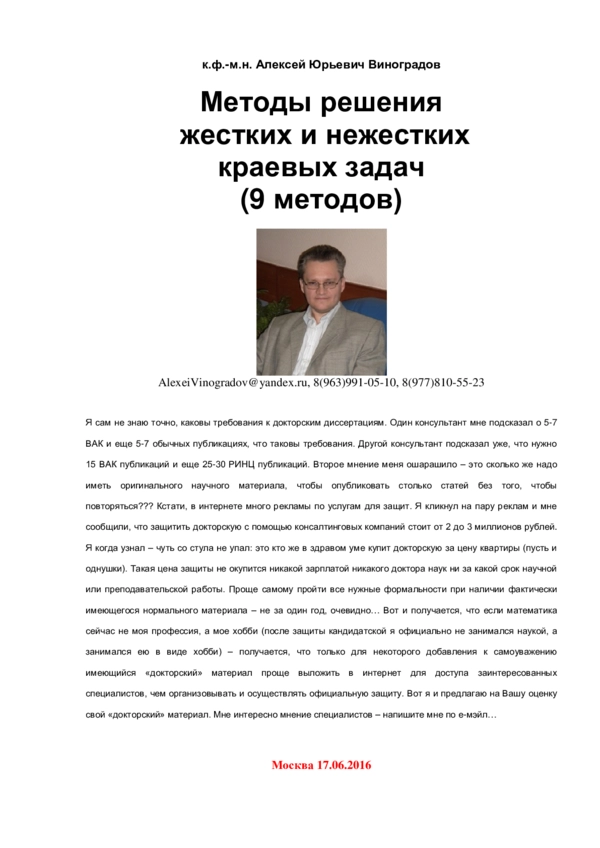 В 2016 году я думал на тему защиты докторской по математике на основе материалов кандидатской плюс дополнительные материалы, которые я наработал, занимаясь этим в виде хобби, а не в качестве научного сотрудника. Докторская не получилась из-за неучастия в каком-либо научном коллективе, но получилась хорошая и теперь даже популярная книга «Численные методы решения жестких и нежестких краевых задач».