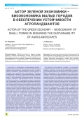 АКТОР ЗЕЛЕНОЙ ЭКОНОМИКИ – БИОЭКОНОМИКА МАЛЫХ ГОРОДОВ В ОБЕСПЕЧЕНИИ УСТОЙЧИВОСТИ АГРОЛАНДШАФТОВ (2025)
