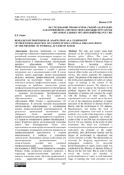 ИССЛЕДОВАНИЕ ПРОФЕССИОНАЛЬНОЙ АДАПТАЦИИ КАК КОМПОНЕНТА ПРОФЕССИОНАЛИЗАЦИИ КУРСАНТОВ ОБРАЗОВАТЕЛЬНЫХ ОРГАНИЗАЦИЙ МВД РОССИИ