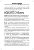 Власти современного КНР позиционируют таланты как ключевой фактор и мощную силу национального технологического прогресса. Фокусом статьи выступает анализ направлений и мер государственной политики Китая по привлечению и удержанию в стране талантливых представителей науки, высококвалифицированных экспертов, молодых специалистов с качественным образованием. Автор выделяет особенности стратегии и тактики формирования национального человеческого капитала с позиции усиления в нем образовательной и интеллектуальной составляющей.