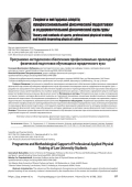 Актуальность разработки программно-методического обеспечения профессионально-прикладной физической подготовки обучающихся юридического вуза обусловлена несовершенством ее содержания и методики. Цель — разработать программно-методическое обеспечение профессионально-прикладной физической подготовки обучающихся юридического вуза, ориентированных на службу в правоохранительных органах, и обосновать содержание средств и методов развития профессионально важных физических качеств. Материалы и методы. Методологическую основу исследования составили теория и методика физической культуры и спортивной тренировки, концепции профессионально-прикладной физической подготовки. Исследование проводилось в 2020–2023 гг. с использованием методов тестирования, опроса, педагогического эксперимента, математической статистики. Результаты и обсуждение. Разработано программно-методическое обеспечение профессионально-прикладной физической подготовки обучающихся юридического вуза, включающее нормативы по прикладной физической подготовке с интеграцией служебно-прикладной направленности, методику профессиональноприкладной физической подготовки обучающихся, методику коррекции и критерии оценки физической подготовленности. Выводы. Повышение уровня физической подготовленности обучающихся возможно при использовании высокоинтенсивных упражнений скоростно-силовой направленности.